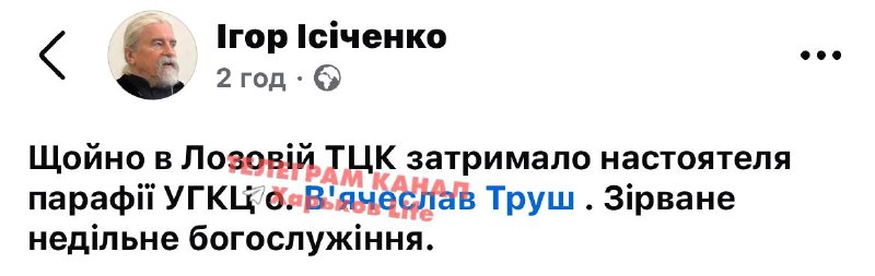👀 Щойно ТЦК забрали священника перед церковною службою У Лозовій працівники місцевого ТЦК затримали представника…