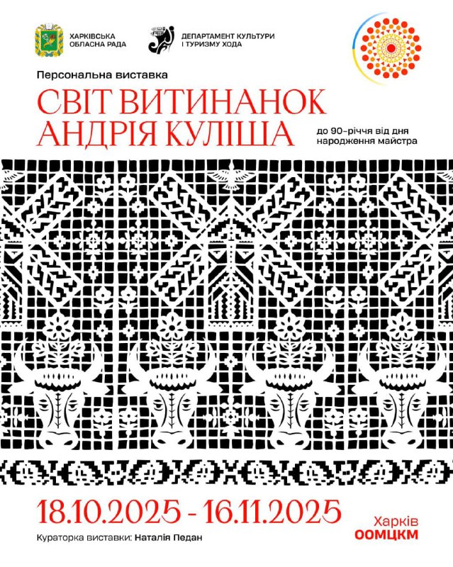 🔶 До 90-річчя від дня народження майстра Андрія Куліша Харківський обласний організаційно-методичний центр культури і мистецтва з 18 жовтня 2025 року презентує персональну виставку майстра "Світ витинанок Андрія Куліша".