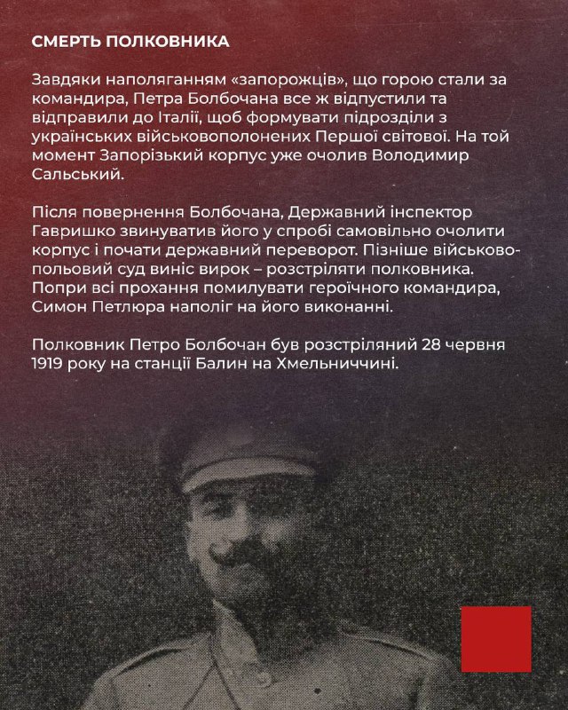 142 роки тому народився військовий діяч, полковник Армії УНР Петро Болбочан.