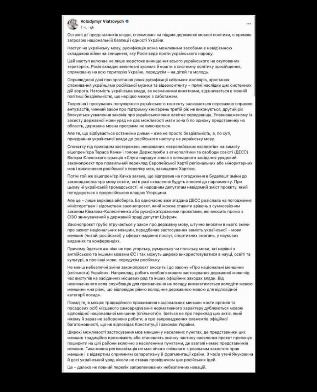 🤮В Україні можуть дозволити використання російської мови в сфері послуг. Про це повідомив нардеп Володимир В’ятрович, зазначивши, що ініційовано законопроєкт, який регулює використання мов національних меншин, зокрема російської.