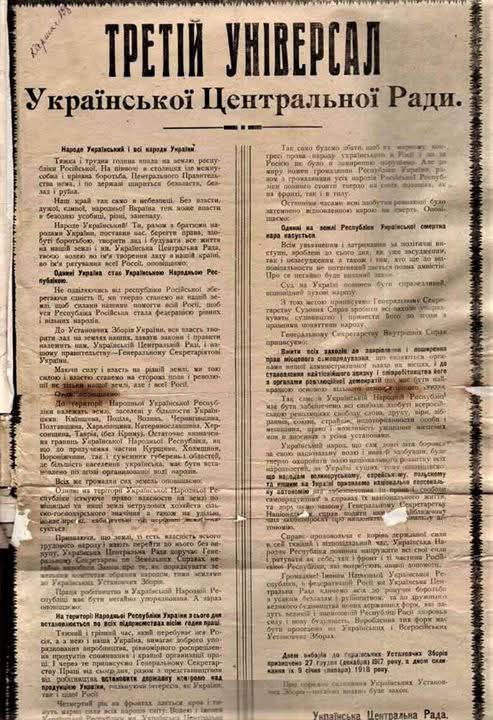 ✅ Заявлялося, що Україна не відокремлюється від Росії, але вся влада в Україні відтепер належить лише Центральній Раді та Генеральному Секретаріату.