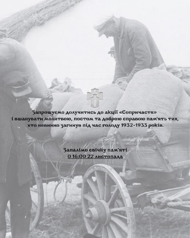 📎 Запрошуємо долучитись до акції «Сопричастя» і вшанувати молитвою, постом та доброю справою пам’ять тих, хто невинно загинув під час голоду 1932-1933 років.