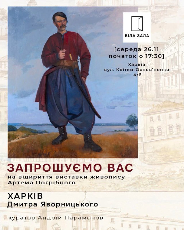 А ми продовжуємо святкувати 170-річчя з дня народження Дмитра Яворницького. Нарешті виставка робот Артема Погрібного повернулась у Харків. За проханням галереї їй змінили назву, однак є і плюс, вона має всі підготовлені до книги "Дмитро Яворницький: від Харкова до Дніпра" роботи художника.