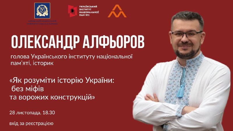 Друзі! Запрошуємо на зустріч з Олександр Алфьоров головою Українського інституту національної пам’яті