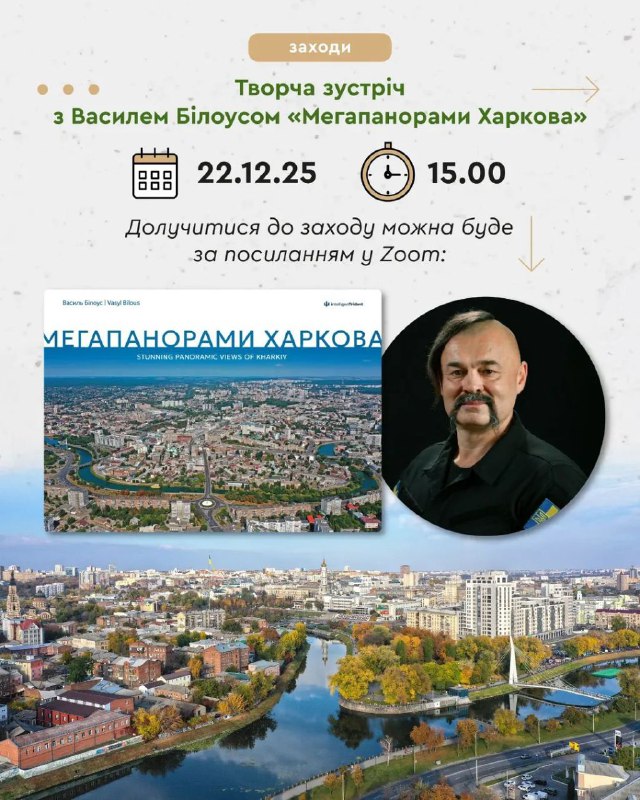 Про мету, творчий процес і результат від першої особи — 22 грудня 2025 р. о 15:00 наживо, у читальній залі міського абонемента ХДНБ ім. В. Г. Короленка.