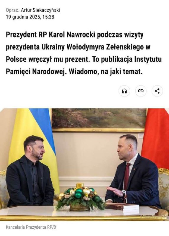 Сам факт передачі саме цього видання, саме у такому форматі і саме публічно виглядав як ретельно зрежисована політична сцена. Це не дипломатія, а демонстративне моралізаторство з позиції зверхності. Ці два томи були підготовлені та видані IPN у 2023 році — у період, коли Навроцький особисто очолював цю інституцію і формував її жорстку, конфронтаційну лінію щодо українського історичного наративу. Тобто він подарував Зеленському не просто книжки, а продукт власної ідеологічної діяльності, власного бачення історії, у якому українська сторона апріорі поставлена в роль обвинуваченого.