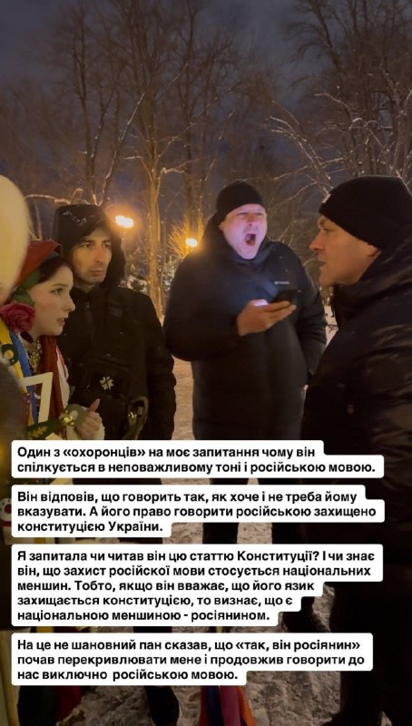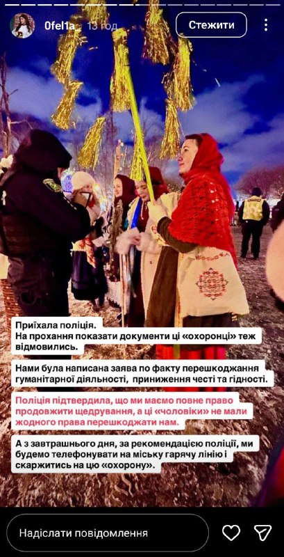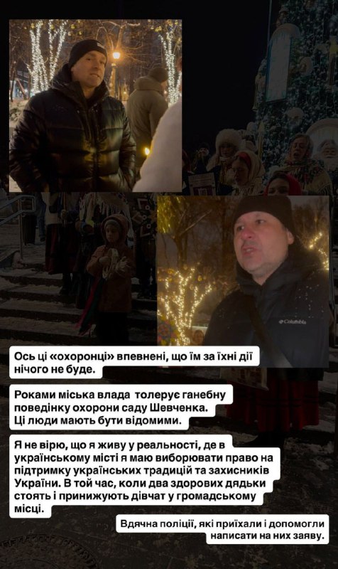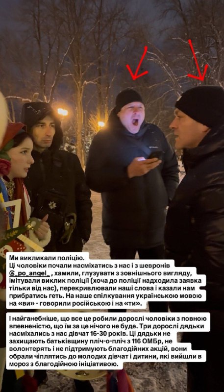 Як розповідають щедрувальники, чоловіки забороняли їм щедрувати, спілкувалися в неповажливому тоні та відмовилися представитися або показати будь-які документи.