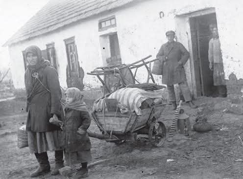 На світлині: "розкуркулена" українська родина біля свого будинку в с. Удачне Донецької області. 1930-ті рр. Невдовзі в хати "розкуркулених" українців заїдуть росіяни.