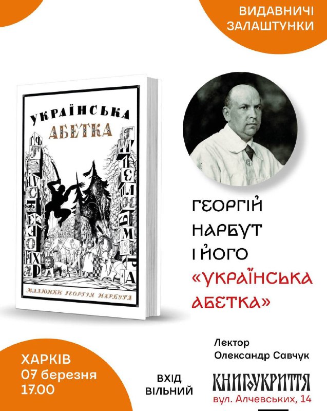 📢 У суботу 07 березня о 17.00 відбудеться лекція про Георгія Нарбута та його "Українську абетку"