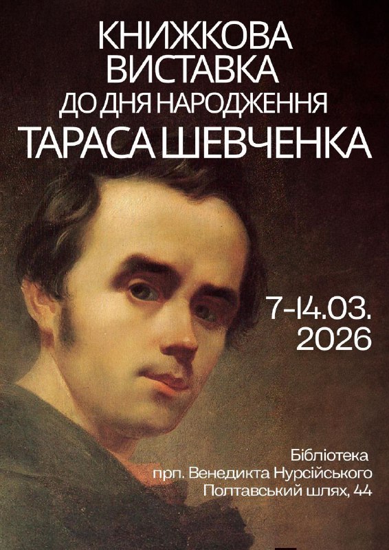 З 7 по 14 березня 2026 року запрошуємо відвідати книжкову виставку до дня народження Тараса Шевченка у бібліотеці імені прп 4.03.2026, Середа | 16:26 З 7 по 14 березня 2026 року запрошуємо відвідати книжкову виставку до дня народження Тараса Шевченка у бібліотеці імені прп. Венедикта Нурсійського Свято-Дмитрівська парафія УГКЦ м. Харкова Друк / PDF