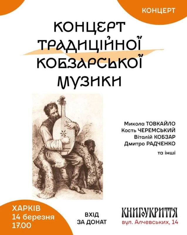 🕕14.03.2026 о 17.00 приходьте до КнигоУкриття (Харків, вул. Алчевських, 14). Вхід за донат!