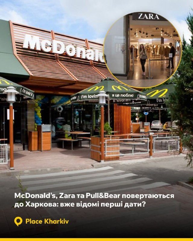 McDonald’s, Zara та Pull&Bear повертаються до ХарковаУ Харкові серйозно заговорили про повернення міжнародних брендів — і, схоже, цього разу процес перейшов із розмов у практичну площину.🤯31 березня 2026 року міська влада разом із ХОВА провели закриту нараду, присвячену стійкості регіону та відновленню бізнесу. За інформацією з джерел, окрім офіційної частини, окремо обговорювали питання повернення великих міжнародних брендів.Серед них — McDonald’s, а також ритейл-гігант Inditex, до якого входять Zara, Pull&Bear, Massimo Dutti, Bershka, Stradivarius та Oysho.За попередніми даними, представники McDonald’s уже оглянули кілька потенційних локацій у центрі Харкова. Розглядають як відновлення старих закладів, так і запуск нових — із сучасними укриттями та адаптацією до безпекових умов.На фоні кейсу з Віталій Кім, який раніше провів перемовини з компанією, після яких у Миколаєві відкрився McDonald’s, харківська влада також активно просуває це питання.Мер Харкова заявив:«Попередньо планується відкриття McDonald’s у Харкові. Це подія, на яку харків’яни чекають давно. У нас уже працює система диференційованих тривог, що дозволяє бізнесу функціонувати стабільніше. Ми нічим не гірші за жителів Миколаєва».Голова ХОВА додав у коментарі журналістам:«Плануємо відкриття 15 травня. Більше нічого не можу додати. Бо багато є факторів, які впливають на це». Паралельно під час наради відбувся діалог із представниками Inditex. За інформацією джерел, компанія також підтвердила зацікавленість у поверненні до Харкова. Точних дат поки немає, але орієнтовно йдеться про кінець весни 2026 року.За неофіційною інформацією, McDonald’s може запуститися у форматі обмеженого меню з акцентом на доставку та самовивіз.Джерело: Де у Харкові