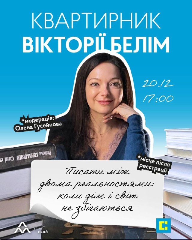 Радо запрошуємо на квартирник нашої резидентки — письменниці та журналістки Вікторії Белім. Її досвід включає роботу з темами конфлікту й культурної памʼяті в різних країнах — від Південної Азії до України — для міжнародних видань, таких як The Financial Times. Поговоримо про письмо в стані розриву, коли фізично ти в одному місці, а емоційно й внутрішньо — в іншому. Про те, як змінюються мова, інтонація й відчуття відповідальності за текст, коли живеш і працюєш за кордоном, і що стається з письмом у момент повернення в Україну. Це тема про досвід «між»: між країнами, між новинами і тишею, між мирним світом і війною. Досвід, який сьогодні знайомий багатьом, незалежно від професії.Модерація — Олена Гусейнова @olenahuseinova Коли? – 20.12 о 17:00Де? – місце проведення повідомляємо після реєстрації*реєстрація:https://forms.gle/GSPdCSpYhXXgVm4n8Приходьте, не вагайтеся, адже буде дуже цікаво. Чекаємо на вас!Харківський ЛітМузей