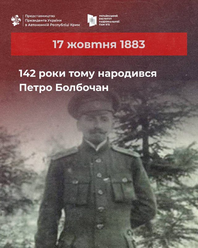Джерело: Історія та пам'ять142 роки тому народився військовий діяч, полковник Армії УНР Петро Болбочан. Сьогодні разом з Представництвом Президента України в Автономній Республіці Крим розповідаємо про його життя і діяльність – як син бесарабського священника став одним з найбільш важливих військовиків Української революції 1917-1921 років.