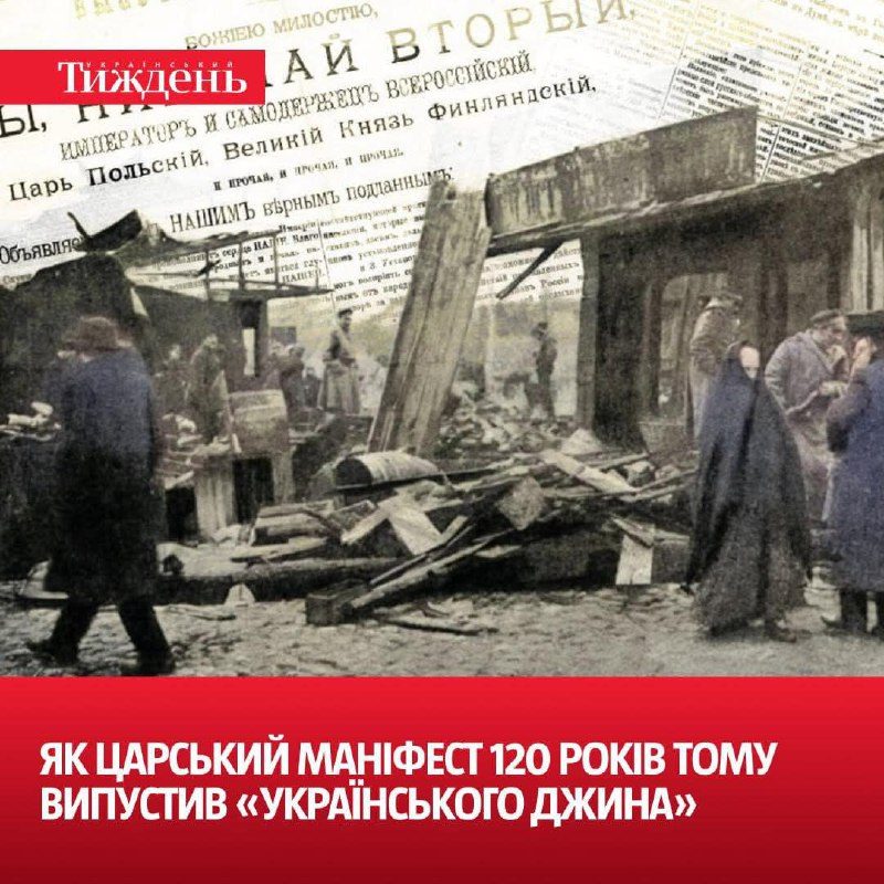 ‼️120 років тому український дух уперше вирвався з імперських кайданів.👉Про маніфест від 17 жовтня 1905 року, який дав свободу слову, громадській активності, «Просвітам» і українській пресі — читайте у Тижні https://tyzhden.ua/persha-trishchyna-moskovskoho-imperializmu-iak-tsarskyj-manifest-120-rokiv-tomu-vypustyv-ukrainskoho-dzhyna/